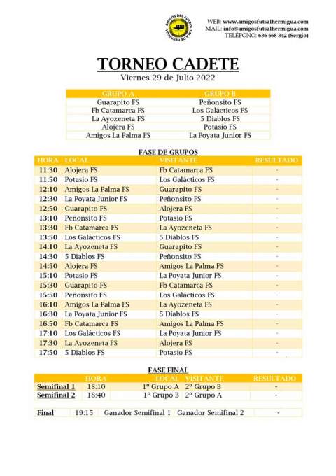 El torneo cadete, busca nuevo campeón, 10 equipos serán los participantes en este torneo que reúne al mejor Fútbol Sala Base de la isla el comienzo de este torneo está indicado para el viernes, 29 de Julio a las 11:30 en la cancha de El Curato de Hermigua.