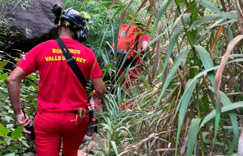 Bomberos de Valle Gran Rey rescataron, indemne, a la acompañante del senderista. Protección Civil y AEA colaboraron en la localización y rescate de los afectados.