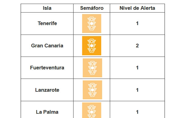 Gran Canaria se mantiene en nivel 2, con riesgo medio, y el resto de islas en nivel 1, de [...] Leer más...